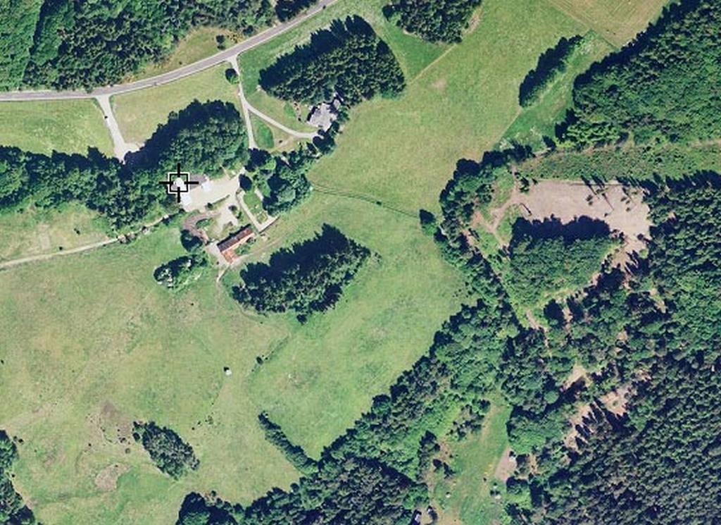 Nutidig luftfoto. Firkanten er spejderhytten