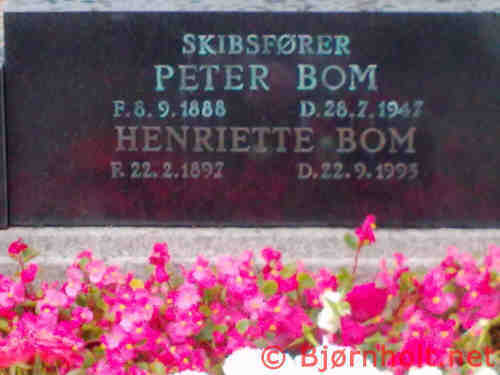 Peder blev gift med Henriette Signe Pedersen [1467] [MRIN: 470], datter af Jørgen Pedersen [5657] og Petra Bertheline Hansen [5658], den 12. dec. 1919 i Turø Kirke, Turø Sogn, Sunds, Svendborg. (Henriette Signe Pedersen [1467] blev født den 22. feb. 1897 i Thurø Mark, Turø Sogn, Sunds, Svendborg, dåb den 4. mar. 1897 i Hj. Dåb Af 2de. Lærer J. Rasmussen, I Thurø Kirke D. 16-5-1897, døde den 22. sep. 1993 i Vanløse Sogn, Sokkelund, København og blev begravet i Bisat Thurø Kirkegård, Thurø Sogn, Sunds, Svendborg.) |