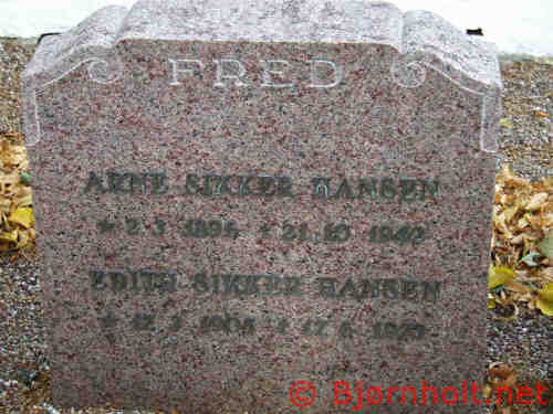 Arne blev gift med Edith Jørgine Margrethe Hansen [15502] [MRIN: 5158], datter af Kristian Nicolaj Hansen [23433] og Karoline Margrethe Nielsen [23434], den 6. jul. 1927 i Vester Marie Sogn, Bornholm Vester, Bornholm. (Edith Jørgine Margrethe Hansen [15502] blev født den 17. mar. 1905 i 68 Selvejergaards Parcel, Vester Marie Sogn, Bornholm Vester, Bornholm., dåb den 13. apr. 1905 i Hj. Dåb, I Vester Marie Kirke D. 28-5-1905, døde den 17. jun. 1975 og blev begravet i Munke Bjergby Sogn, Alsted, Sorø.) |