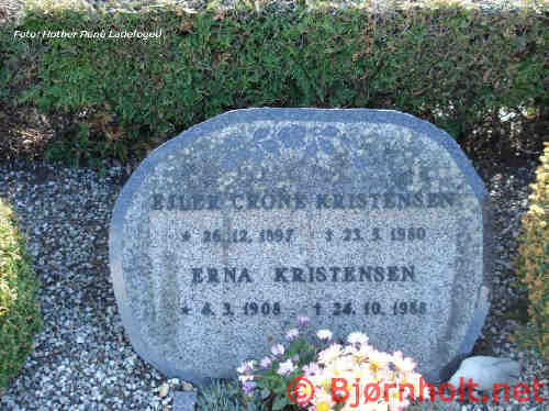 Erna blev gift med Ejler Markus Crone Kristensen [20880] [MRIN: 7112], søn af Andreas Kristensen [20881] og Mette Marie Nielsen [20882], den 11. nov. 1928 i Bjerringbro Sogn, Middelsom, Viborg. (Ejler Markus Crone Kristensen [20880] blev født den 26. dec. 1897 i Grønbæk Sogn, Lysgård, Viborg og døde den 23. maj 1980 i Bjerringbro Sogn, Middelsom, Viborg.) |