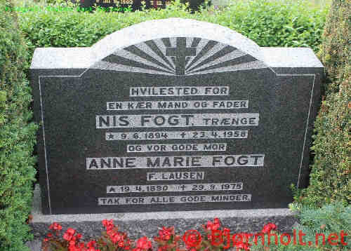 Nis blev gift med Anne Marie Lausen [21608] [MRIN: 7359], datter af Hans Christian Lausen [22903] og Ellen Johansen [22904], den 14. jan. 1920 i Kegnæs Kirke, Kegnæs Sogn, Als Sønder, Sønderborg. (Anne Marie Lausen [21608] blev født den 19. apr. 1890 i Østerby, Kegnæs Sogn, Als Sønder, Sønderborg, dåb den 8. jun. 1890 i Kegnæs Kirke, Kegnæs Sogn, Als Sønder, Sønderborg og døde den 29. sep. 1975 i Kegnæs Sogn, Als Sønder, Sønderborg.) |
