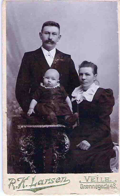 Jens blev gift med Marie Kirstine Jensen [23678] [MRIN: 8103], datter af Stephan Jensen [23556] og Ane Marie Madsen, Gram [23679], den 11. aug. 1900 i Smidstrup Sogn, Holmans, Vejle. (Marie Kirstine Jensen [23678] blev født den 2. jul. 1876 i Øster Starup Sogn, Brusk, Vejle, dåb den 2. jul. 1876 i Hj. Dåb, I Øster Starup Kirke D. 24-9-1876, døde den 16. jul. 1946 i Silkeborg Sygehus, Silkeborg Sogn, Gjern, Skanderborg og blev begravet i Alderslyst Kirkegård, Alderslyst Sogn, Gjern, Skanderborg.) |