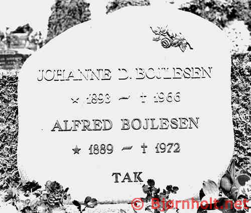 Alfred blev gift med Johanne Dorthea Pedersen [2730] [MRIN: 984], datter af Søren Julius Pedersen [14374] og Anna Kirstine Andersdatter [14375], den 28. okt. 1923 i Sejerø Sogn, Skippinge, Holbæk. (Johanne Dorthea Pedersen [2730] blev født den 5. jun. 1893 i Kongstrup, Sejerø Sogn, Skippinge, Holbæk, dåb den 11. jun. 1893 i Sejerø Sogn, Skippinge, Holbæk, døde den 23. aug. 1966 i Randers Sygehus, Randers Sogn, Støvring, Randers og blev begravet den 27. aug. 1966 i Skt. Pauls, Kirkegård, Hadsten Sogn, Sabro, Aarhus.) |