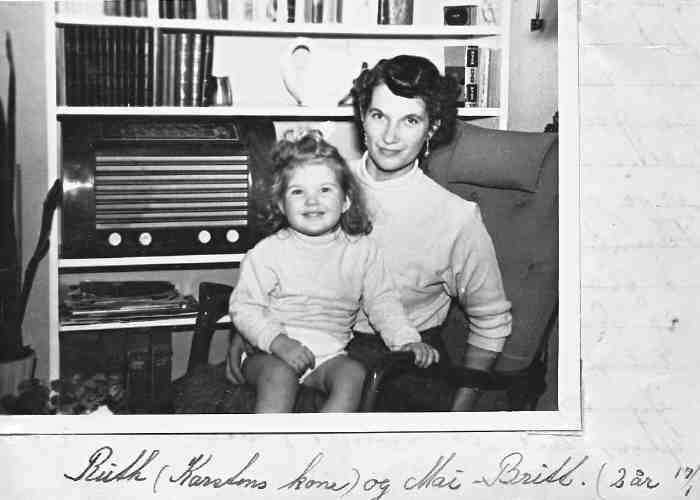 Ruth blev derefter gift med Karsten Bjørnholt [126] [MRIN: 111], søn af Anders Bjørnholt [26] og Olavia Andrea Alsen [104], den 7. maj 1949 i København Kastrup Kirke, Kastrup Sogn, Sokkelund, København. Ægteskabet endte med skilsmisse den 9. apr. 1987. (Karsten Bjørnholt [126] blev født den 7. dec. 1924 i Skodborg Sogn, Frøs, Haderslev, dåb den 30. dec. 1924 i Skodborg Sogn, Frøs, Haderslev, døde den 15. sep. 2012 i København, Frederiksberg Sogn, Sokkelund, København og blev begravet den 27. sep. 2012 i Søndermark Kirkegård, Frederiksberg Sogn, Sokkelund, København.)