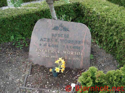 Ester blev gift med Aksel Sigvald Vorsøe [20919] [MRIN: 7125], søn af Jakob Vilhelm Vorsøe [20920] og Dorthea Nielsen [20921], den 18. dec. 1938 i Bjerringbro Sogn, Middelsom, Viborg. (Aksel Sigvald Vorsøe [20919] blev født den 18. aug. 1898 i Roum Sogn, Rinds, Viborg, dåb den 4. sep. 1898 i Roum Sogn, Rinds, Viborg, døde den 3. jan. 1984 i Bjerringbro Sogn, Middelsom, Viborg og blev begravet i Bjerringbro Kirkegård, Bjerringbro Sogn, Middelsom, Viborg.) |