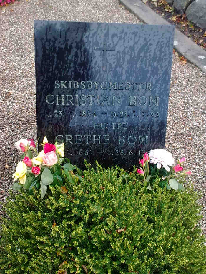 Grethe blev gift med Christian Bom [5655] [MRIN: 2223], søn af Skibsbygmester, Peder Bom [5659] og Kristiane Mogensen, "Plejebarn" [5660], den 2. feb. 1886 i Turø Kirke, Turø Sogn, Sunds, Svendborg. (Christian Bom [5655] blev født den 23. sep. 1854 i Turø Sogn, Sunds, Svendborg, dåb den 5. nov. 1854 i Turø Kirke, Turø Sogn, Sunds, Svendborg, døde den 21. maj 1922 i Turø Mark, Turø Sogn, Sunds, Svendborg og blev begravet den 26. maj 1922 i Turø Kirkegård, Turø Sogn, Sunds, Svendborg.) |