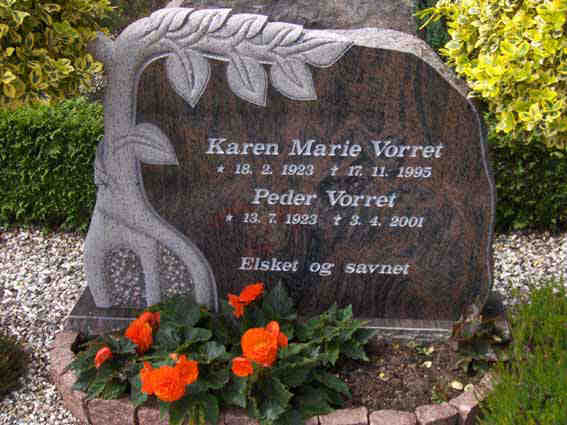 Peder blev gift med Karen Marie Jensen [6106] [MRIN: 2358], datter af Lars Peter Jensen [15881] og Nielsine Jensen [15882], den 3. feb. 1948 i Karup Kirke, Karup Sogn, Lysgård, Viborg. (Karen Marie Jensen [6106] blev født den 18. feb. 1923 i Uhregaard, Grove Sogn, Ginding, Ringkøbing og dåb den 29. mar. 1923 i Karup Kirke, Karup Sogn, Lysgård, Viborg.) |